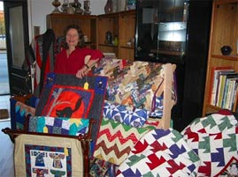 Georgette and her quilts at Lowell Open Studios